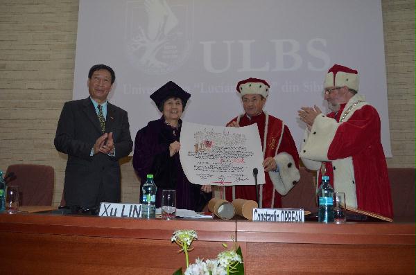 2014年10月17日,罗马尼亚锡比乌卢奇安·布拉卡大学向孔子学院总部总干事、中国国家汉办主任许琳授予了荣誉博士学位,以表彰许琳女士在中罗两国文化、教育及培养杰出人才方面所做出的卓越贡献。