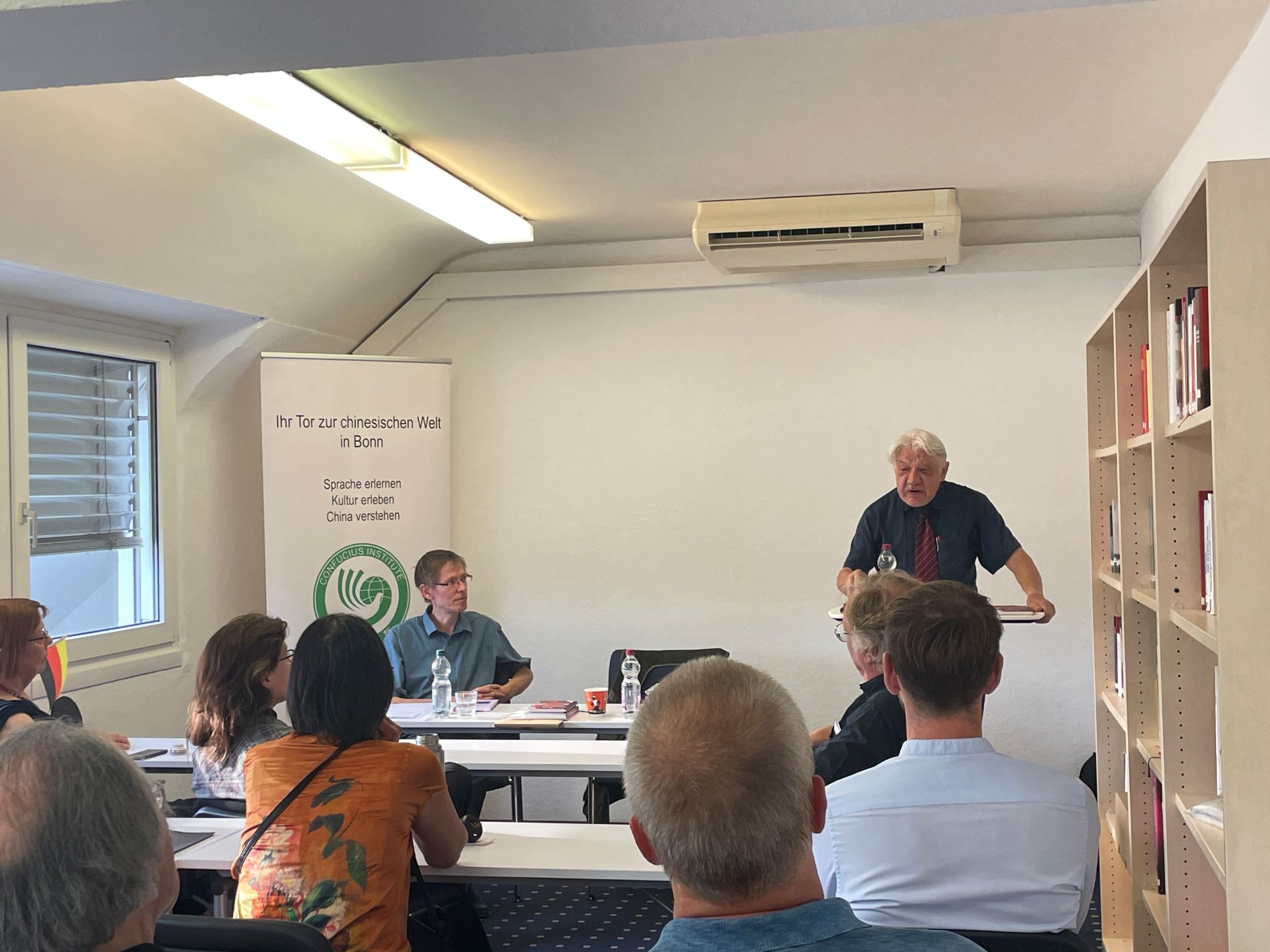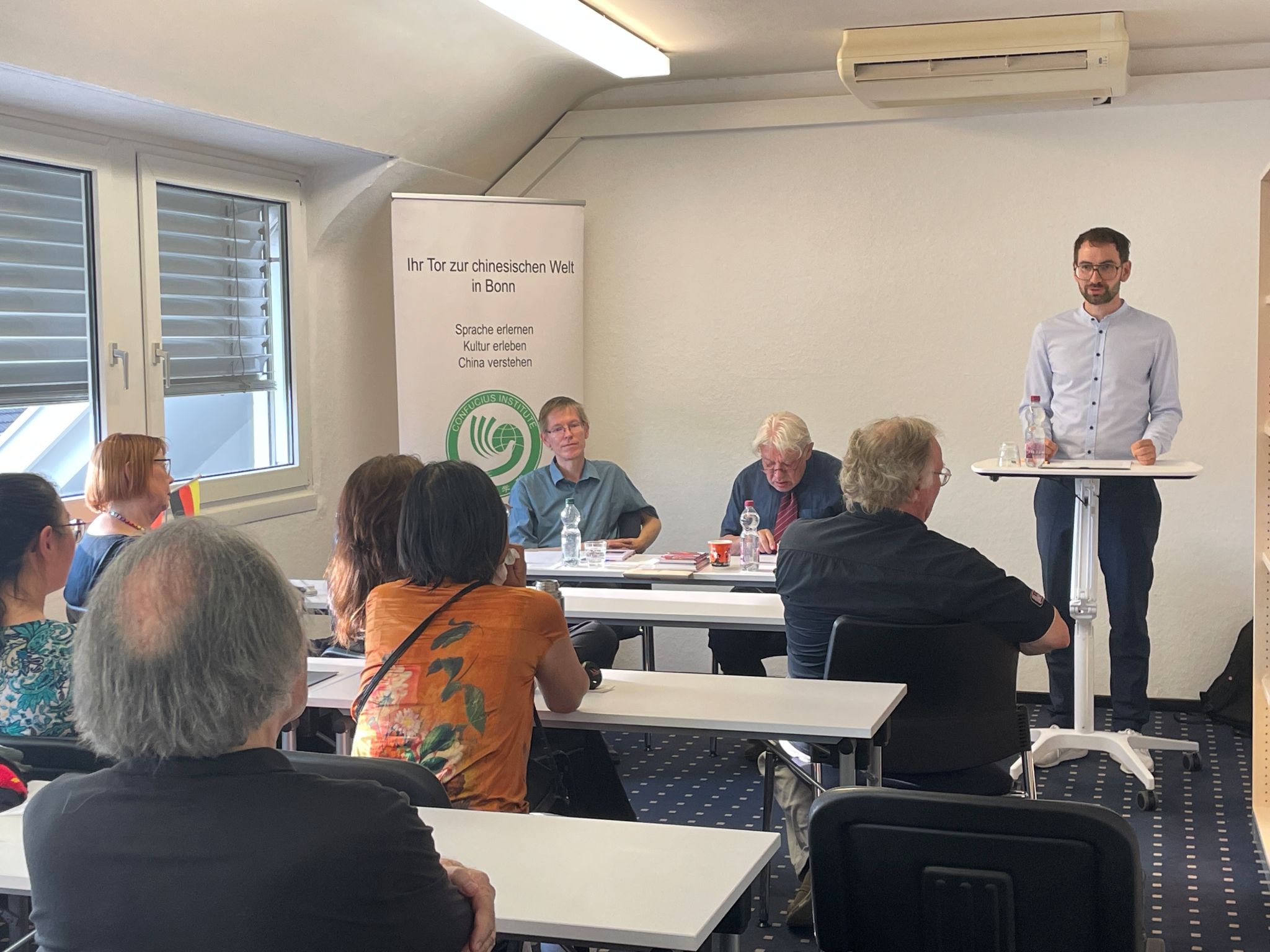 9月11日18点15分,波恩大学孔子学院成功举办了“顾彬诗歌朗诵会”,来自波恩大学汉学系的马海默博士(Dr. Marc Hermann)与波恩孔院的德方执行院长叶翰识博士(Dr. Hannes Jedeck)共同担任主持人。
