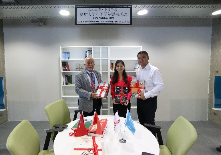 10月16日,土耳其伊斯坦布尔奥坎大学孔子学院在海航土耳其myTECHNIC公司(简称MYT)举行了“本本真情 书香传递”中国语言文化读物赠送活动。奥坎孔院中方院长胡巍向海航MYT董事长兼执行官吕宇鹏、培训部主任A. Kadir Kahraman(卡哈曼)赠送了精心挑选的各类读物,助力其建设“书香文华”中文读书角。