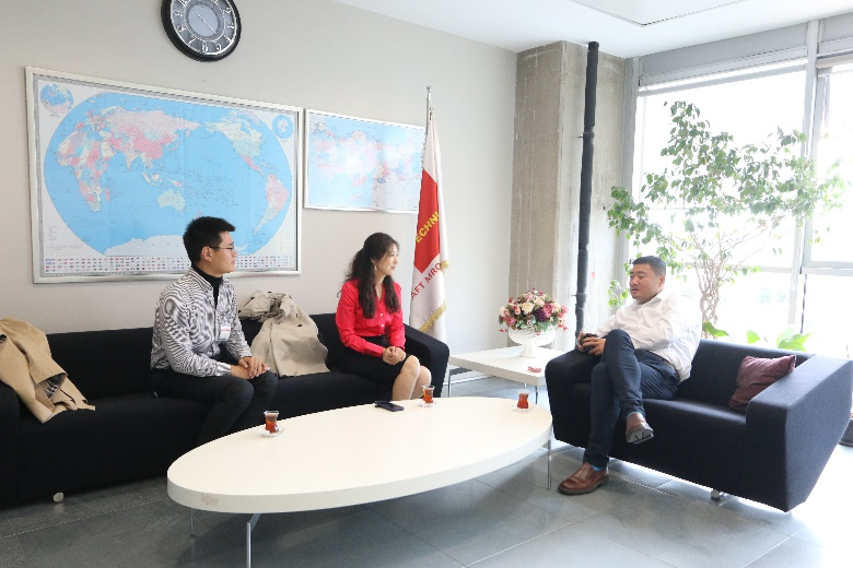在赠书活动开始前,吕宇鹏董事长向胡巍院长介绍了公司的基本情况。隶属于海航集团的MYT公司现有土籍员工近900人,公司持有多项维修许可资质及培训资格,能够为全球客户提供机体大修、发动机修理、附件修理和航线维修,及维修人员培训服务。在企业文化方面,MYT公司一直重视并鼓励员工学习中文,了解中华文化,公司里随处可见中英双语标语。胡巍院长也向吕宇鹏董事长和Kahraman主任介绍了此次赠送的各类读物,包括中文教材、汉字学习材料、中土互动学习教辅、土语杂志书籍、中国文化类书籍以及音像制品等40种读物。奥坎孔院希望通过这些丰富多样的教材、教辅或书籍,让更多的土耳其员工了解中国的语言文化。说到汉语学习,Kahraman主任表示,已经有部分公司员工报名参加了奥坎孔院的线上中文课。培训部会尽快调研公司中有意向学习中文的员工数量,以期为公司员工专设汉语培训班。双方还就授课的时间、教材、场地以及内容等具体问题进行了沟通和交流。