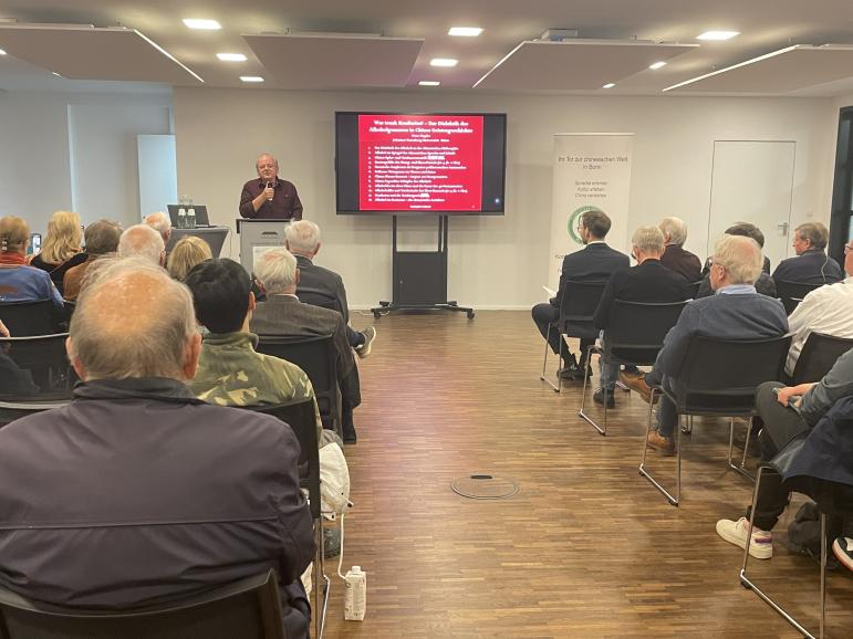 当地时间10月24日19点波恩大学孔子学院与波恩大学俱乐部共同举办了名为“孔子喝什么——中国饮酒文化中的辩证法”主题讲座。德国著名汉学家柯彼德(Prof. Dr. Peter Kupfer)为本次活动的主讲人。波恩大学俱乐部负责人根特·舒尔茨教授(Prof. Dr. Günther Schulz)和波恩大学汉学系的廉亚明教授(Prof. Dr. Ralph Kauz)担任本次活动的主持人。
