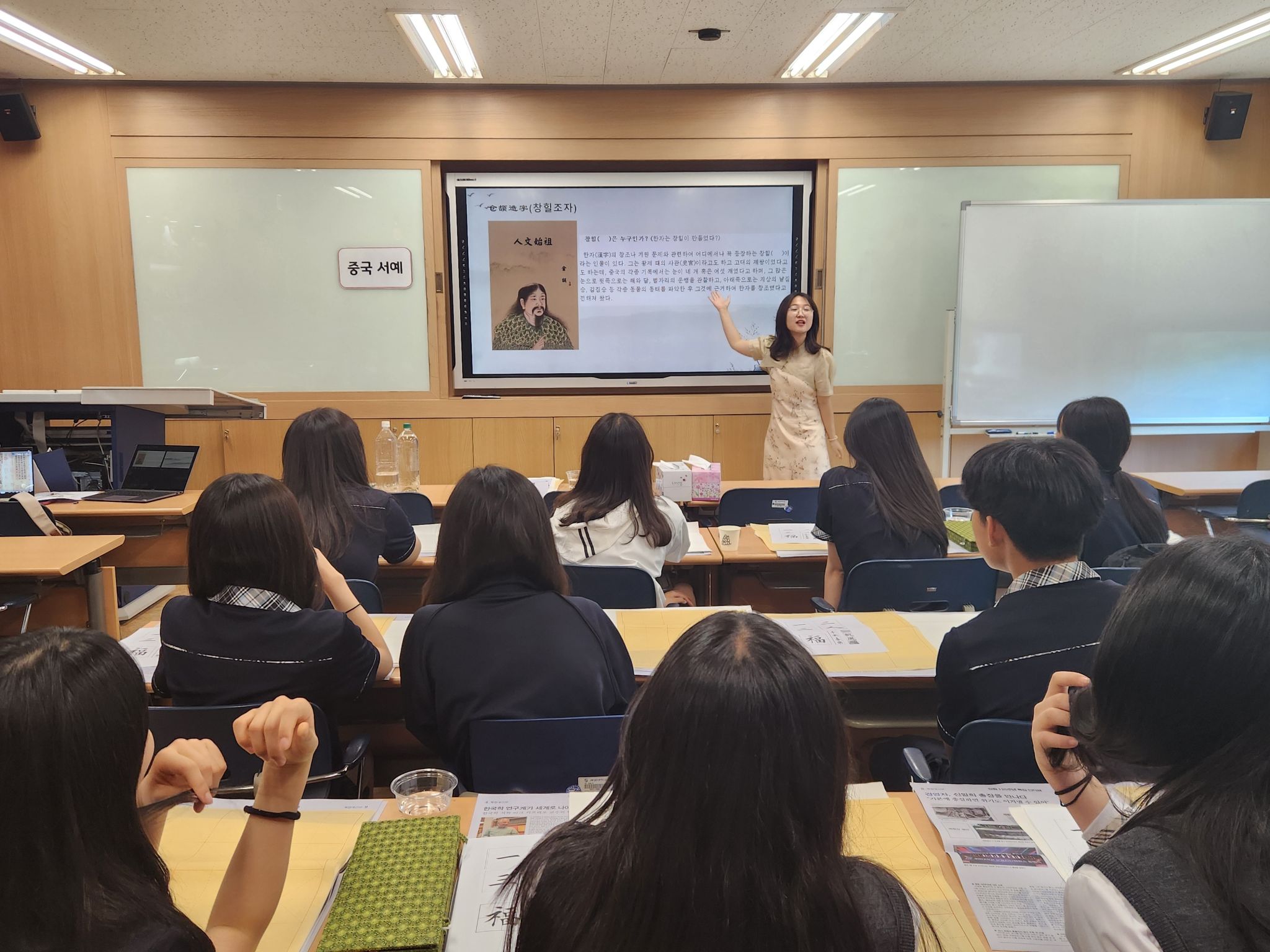 图一 李淑一老师在讲解汉字的起源