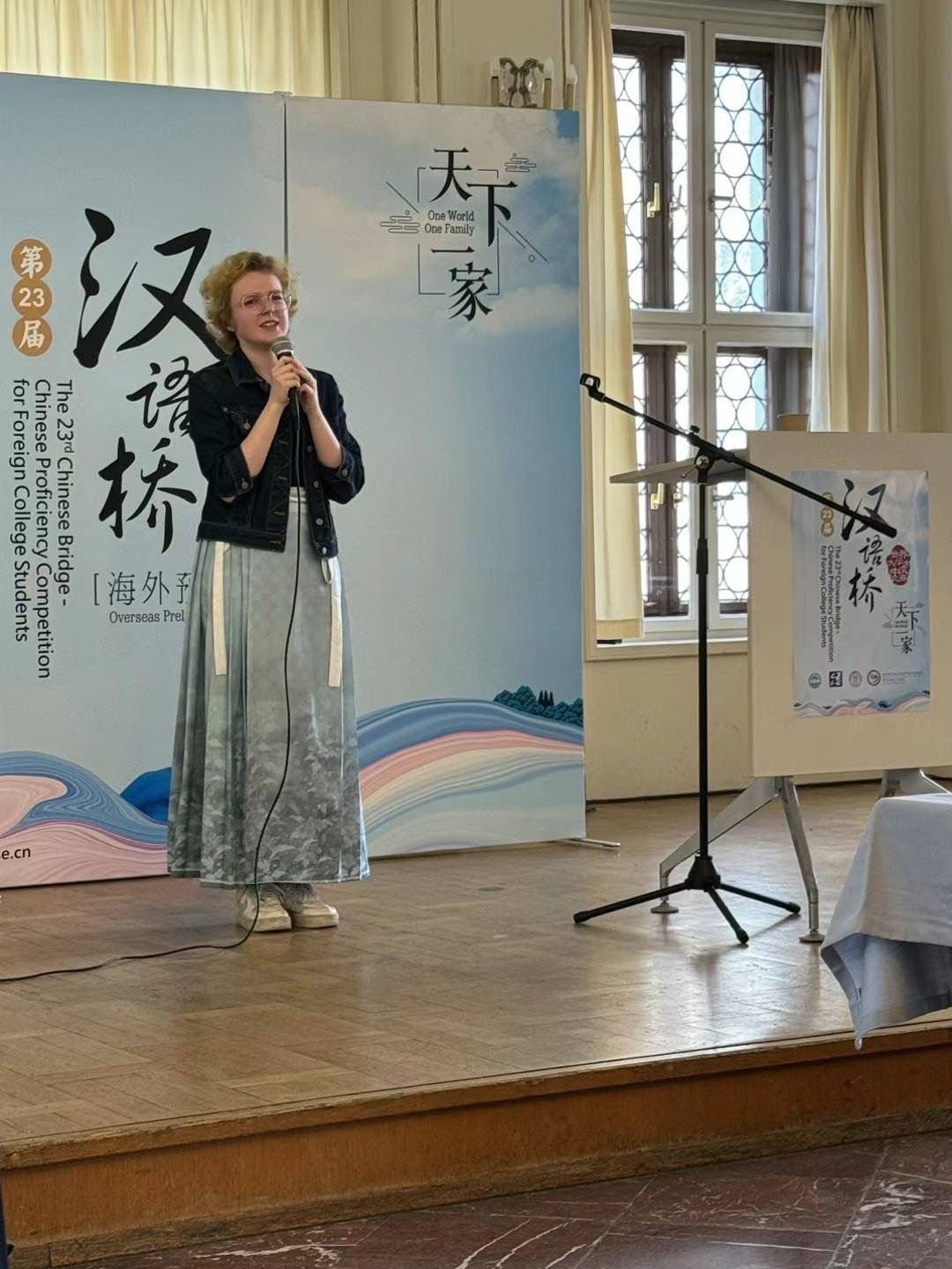 世界大学生“汉语桥”比赛为来自各地的年轻汉语学习者提供了在国际舞台上展示汉语技能的机会,让参赛者有机会与热爱中文与中国文化的同道中人认识、互相交流。波恩大学孔子学院今年推荐了李欢欣(Ann-Christin Otte)、李欧宁(Leonie Wagner)和朱励安(Julian Schneider)三位选手参赛。三位学生目前就读波恩大学汉学系,他们都希望通过比赛提高自己的汉语水平、结交新朋友。