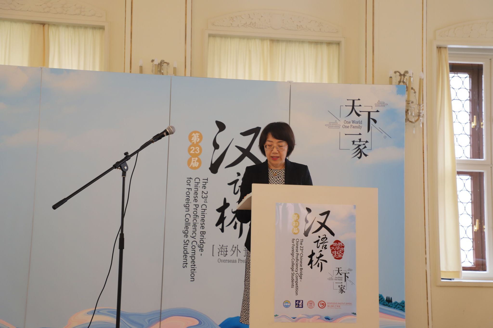 中国驻德国大使夫人郭金秋参赞、莱比锡市外事办主任郭嘉碧博士(Dr. Gabriele Goldfuss)、莱比锡大学汉学系徐约和教授(Dr. Jörg Henning Hüsemann)分别为比赛致辞。