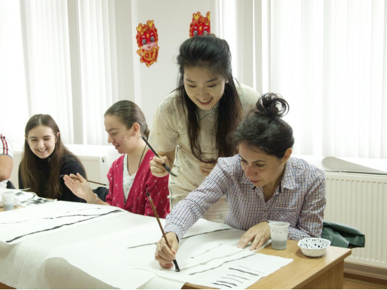 罗马尼亚锡比乌卢奇安·布拉卡大学孔子学院于4月12日至19日,组织了书法、太极扇、中国棋牌、民族服饰等国际中文日系列活动,吸引了近百名当地学生及民众的参与。活动采用了知识解说和亲身体验相结合的方式。例如老师们首先介绍汉字的起源,演示握笔的正确姿势以及基本笔画的书写方法。而后,学生们在老师的指导下认真练习书写汉字,领略中国书法的独特魅力和文化内涵;在展示了傣族、瑶族、哈尼族等中国不同民族的精美服饰后,老师们介绍了中国是一个统一的多民族国家的有关情况。然后,让学生们身着中国传统民族服饰,亲自感受不同民族服饰的特点。