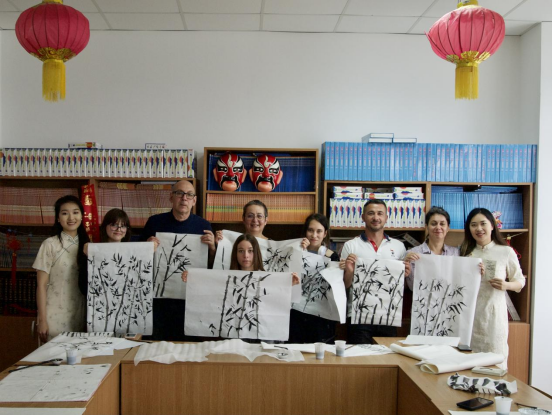 罗马尼亚康斯坦察奥维第乌斯大学孔子课堂(以下简称康港课堂)于4月20日举办了“中国画的美学”文化活动。活动以公派教师徐玉锦介绍中文日相关的二十四节气“谷雨”和造字传说中的神话人物“仓颉”等背景知识开始。接着,志愿者教师魏文旭通过与西方传统绘画的跨文化对比分析,简要概述了中国传统绘画艺术在历史发展、类型、技巧、审美风格等方面的特点。随后,志愿者教师陈沫澄生动且细致地为大家介绍了“竹”这一中国传统绘画的重要意象,并指导学员们亲自动手绘制水墨画中的“竹”。参加活动的学员们表现出了高昂的学习热情,在每一笔“浓、重、清、淡”的勾勒和墨汁的清香中,感受到了中国传统水墨的魅力。