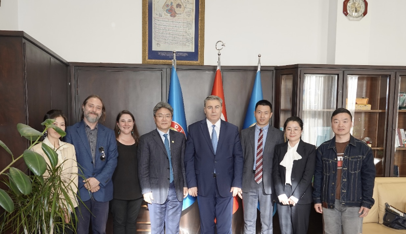 4月16日,代表团访问安卡拉大学,语言与历史地理学院院长莱文特·卡亚皮纳尔(Levent KAYAPINAR)教授、土耳其知名汉学家、汉学系主任古尔罕(Gürhan KiRiLEN)教授、汉学系研究助理成苹(Pinar ALTAY YILMAZ)参与接待与会谈。卡亚皮纳尔院长介绍了汉学系所在语言与历史地理学院办学情况,外语教学设置,学院拥有近8000名学生。院长本人专注巴尔干半岛、希腊语与历史研究,关心中国发展,对中国语言文字尤有兴趣。张宝钧副校长就我校外语教学、汉学与中国学专业、国际中文教育优势、区域国别研究、我国语言文字发展历史情况进行回应。双方介绍了各自办学特色,还就科技进步、机器翻译对外语教学带来的冲击与应对策略,对中国传统儒家思想、一带一路命运共同体、丝绸之路历史沿革进行了探讨。卡亚皮纳尔院长表示,安卡拉大学总部对学校国际化很积极,期待与我校就汉学系与土耳其语专业的学生交换等项目签署框架性合作协议。张宝钧副校长代表学校表示热烈欢迎,将尽快准备好合作协议,也邀请卡亚皮纳尔院长适时来我校开展国别区域研究讲座与项目。