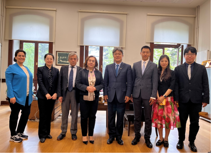 4月19日,代表团访问伊斯坦布尔大学,副校长古尔苏穆·阿克(Gülsüm AK)教授、国际学术关系办公室主任费扎·努尔·通瑟·基林奇(Feyza Nur Tuncer KilinÇ)副教授、文学院汉语言系系主任、土耳其知名汉学家阿尤布·撒勒塔使(Eyup SARITAS)教授参加接待与会谈。张宝钧副校长首先介绍了北语的办学历史、“小联合国”式的办学特色、学科专业、国际学生教育、外语教学设置、土耳其专业发展,以及围绕语言教育所设立的相关专业,北语已发展成为较为综合性的人文社科类院校。北语希望能与伊大开展土耳其语、中文相关专业等方面的“2+2”本科生联合培养项目,帮助伊大设立汉学研究中心、成立中土研究智库等。古尔苏穆副校长表示,虽然本人还没去过中国,但深刻了解中国在世界的影响力,学校重视与中国的合作,期待伊大学习中文的学生能与中国高校有更多正式交流,北语土耳其语专业与伊大中文专业本科学生可优先开展互换互免学习。她随后介绍了伊斯坦布尔大学拥有土耳其语等24个研究中心,能够提供更广阔的合作平台,除土耳其语、中文专业方面的合作,两校还可以通过网络开展新闻、历史、智库等其他专业方面的交流合作。张宝钧副校长表示,北语期待与伊大在中文与土语专业、共建中土区域国别研究与智库、国际关系与其他语言教学相关专业开展务实的密切合作,并愿意为伊大汉语言系设立硕士、博士专业提供帮助。双方还就奖学金项目、学生学习资源、伊大学生来华夏令营、伊大代表团访问北语、签署合作协议进行了详细讨论。