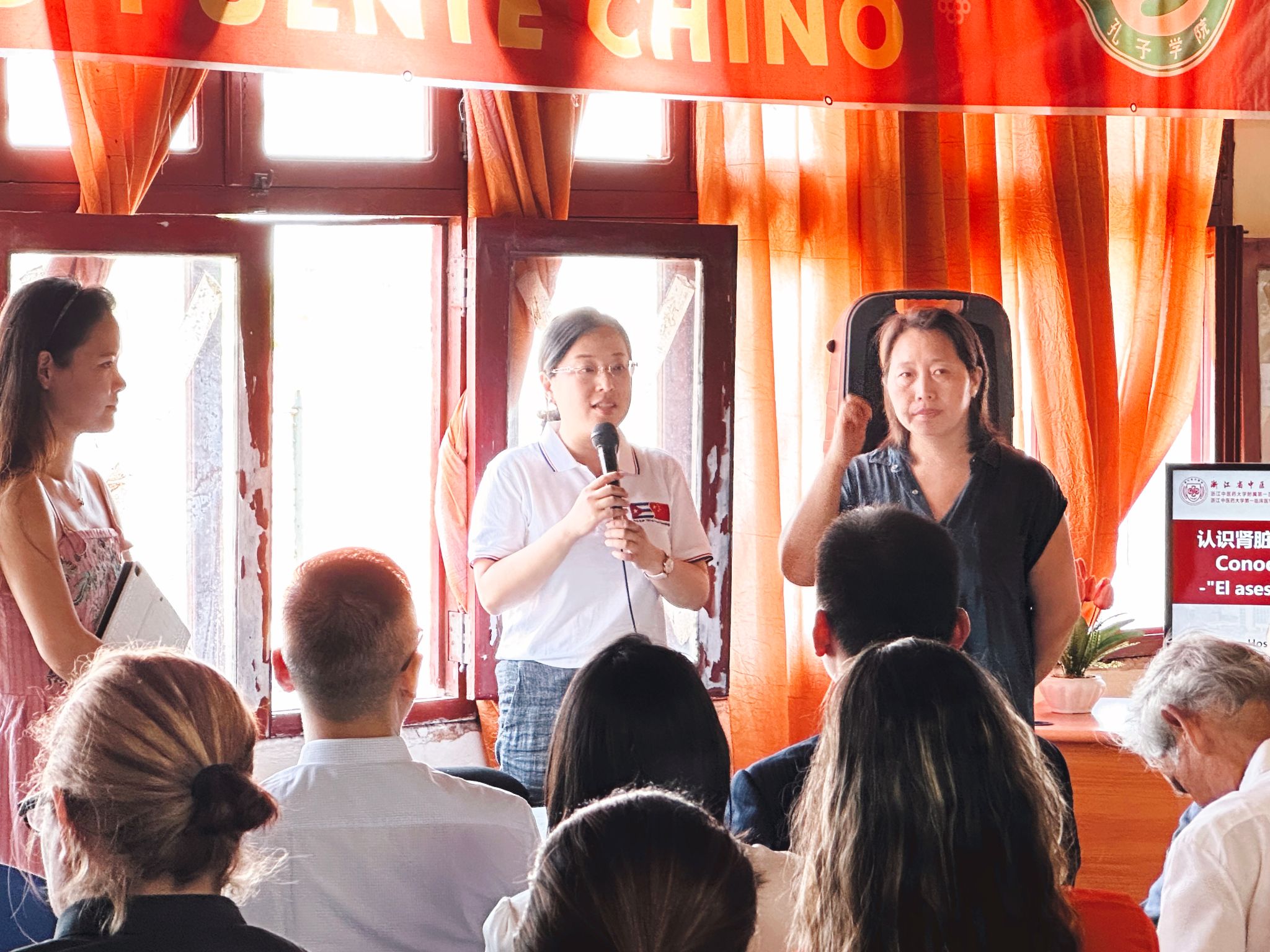 活动伊始,何书记为在场的古巴医师和居民带来了一场精彩的肾病防治讲座,介绍了常见慢性病与肾脏病的关系、发现肾脏疾病的早期信号、肾脏保护的要点,以及传统医学助力肾脏健康的实践等。讲座深入浅出,既有专业的论证,又有实用的健康建议,不同专业背景的观众都获益匪浅。