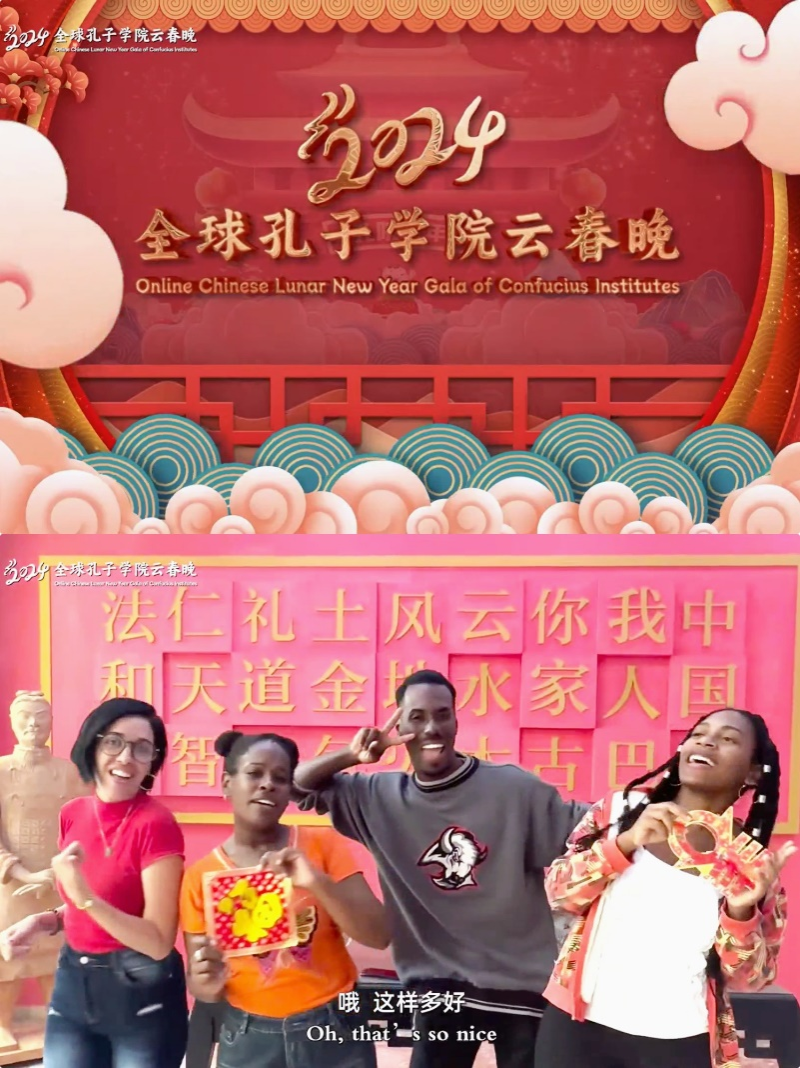 龙年春节,哈瓦那大学孔院合唱团全体成员还齐聚云端,在中国国际中文教育基金会主办的“2024全球孔子学院云春晚”,参与表演歌曲串烧《春节福气歌》,以一首充满朝气与活力的《New Boy》为大家送上新春祝福。