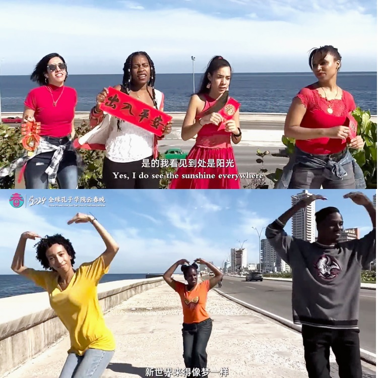 在央视团队协助下,孔院合唱团成员在古巴著名地标何塞·马蒂纪念碑完成了拍摄。其中两条“龙舞挑战”视频成功获选,作为拉美地区的代表,在央视春晚中汇编播放,亮相于歌手大张伟、刘宇宁《晒share》演唱节目的互动背景中,与全球华人及中文爱好者同庆春节,献礼龙年盛会!