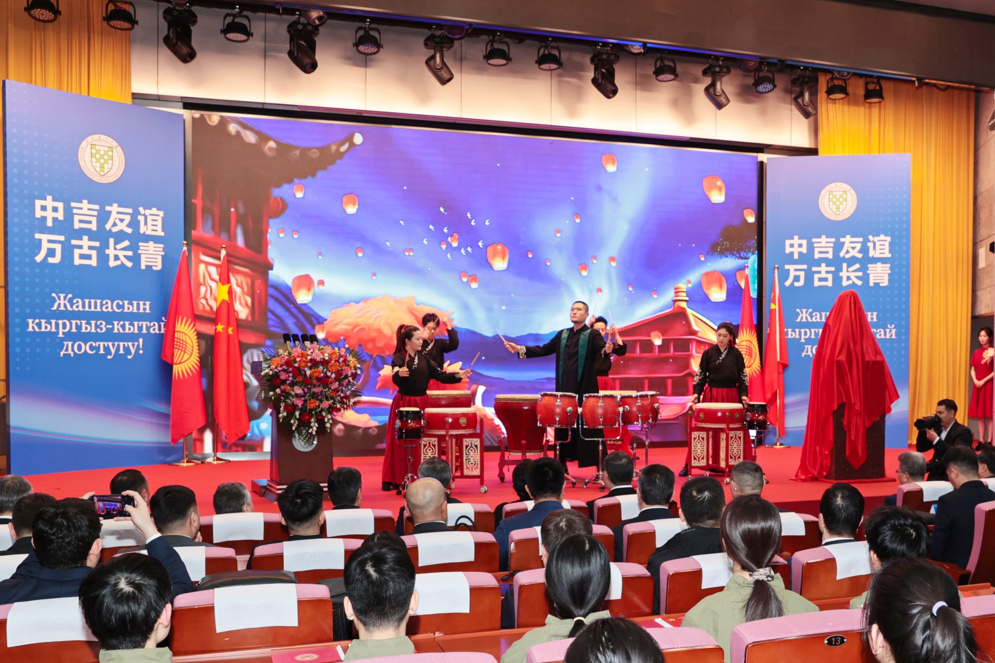 此次活动正值中国农历新年,北京语言大学教师及中外学生以精彩的暖场节目热烈欢迎吉尔吉斯代表团莅临我校。中国打击乐重奏《龙腾虎跃》率先开场,激昂的鼓点仿佛描绘了一幅龙腾盛世、虎跃山川的壮阔图景,展现了中华民族勇往直前的精神风貌。