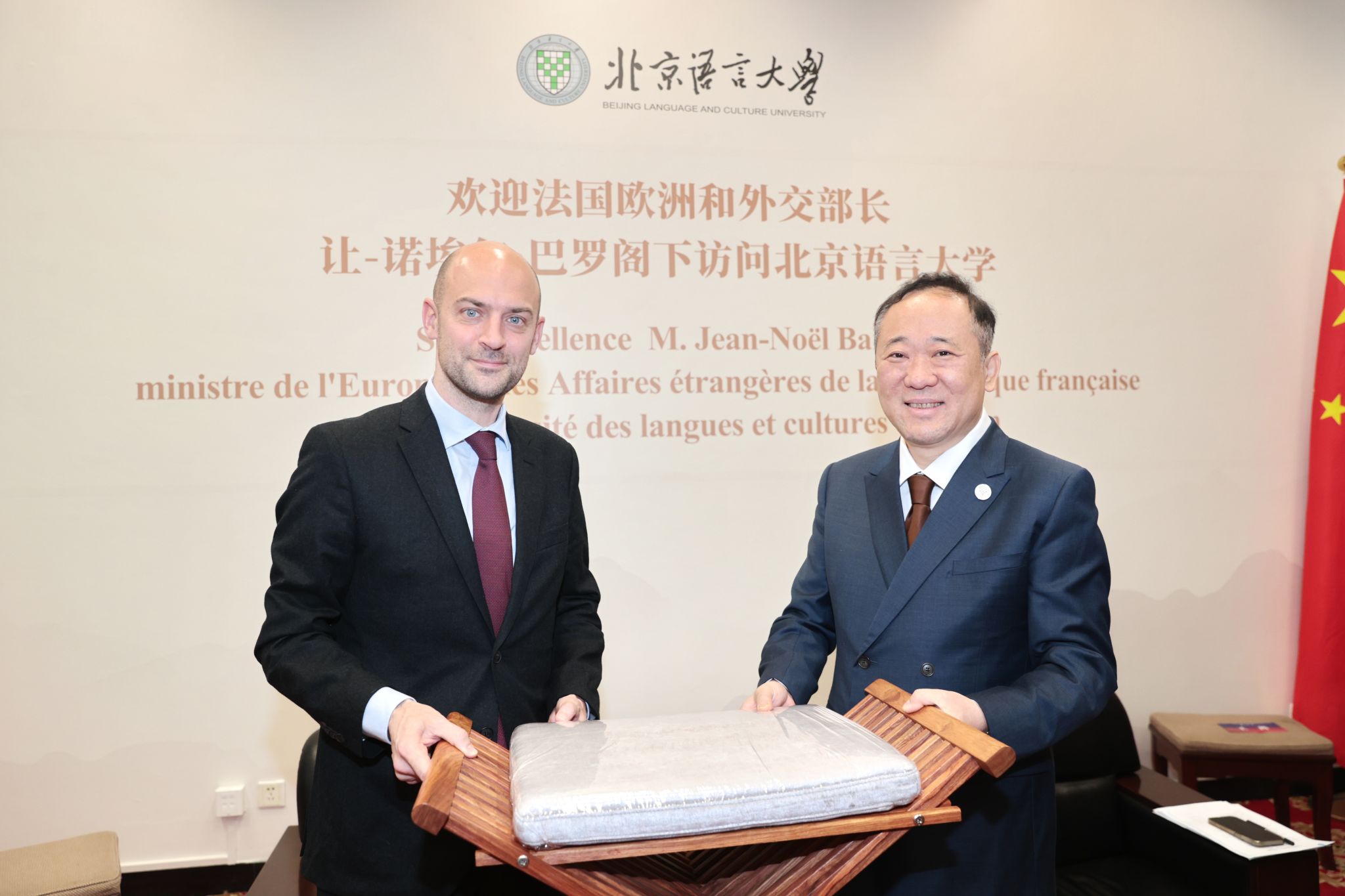 巴罗外长肯定了北京语言大学在推动中法两国人文交流中发挥的重要作用,对北京语言大学在培养法国留学生和外交官所做出的重要贡献给予了高度赞赏,对北京语言大学与法国克莱蒙高等商学院之间的进一步紧密合作给予厚望,希望在现有基础上继续加强两国高校之间的交流。