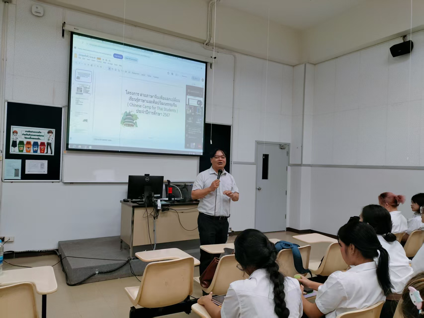 培训会伊始,玛希隆孔院泰方院长张曹武首先回顾了往期项目的成功经验,并详细介绍了此次暑期培训的课程安排和文化体验活动。在招生宣讲环节,学生们积极提问,就课程内容、住宿条件、在华生活等问题与校方代表进行了热烈交流。为活跃气氛,主办方还设置了有奖问答环节,向踊跃参与的学生赠送了具有中国特色的纪念品,现场氛围轻松愉快。在互动环节,不少学生及家长对奖学金政策、在华学习体验等细节进行了咨询。