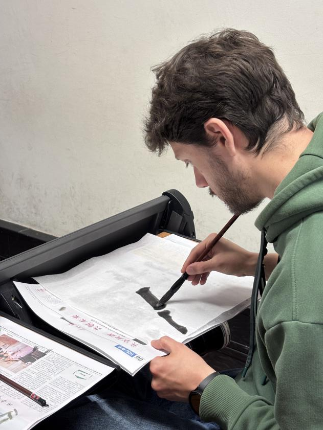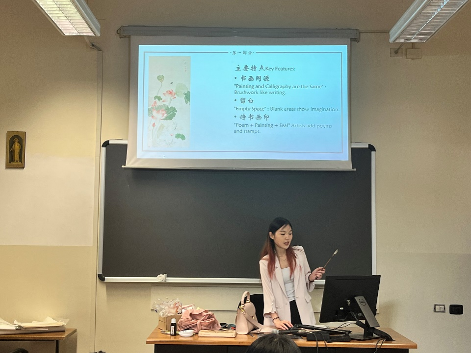 在本次活动中,中国国画这一承载千年历史的艺术形式走进了意大利米兰圣心大学的校园。对许多学生而言,这是他们首次亲身体验笔墨纸砚等中国传统书画工具。在学习基本书画技法的同时,他们也切身感受到了笔墨之间所蕴含的意象之美。学生们手握毛笔,在宣纸上描绘出属于自己的“东方印象”,一笔一划之间,勾勒出对中国艺术的热爱与敬意。