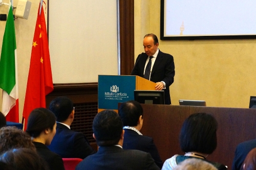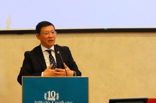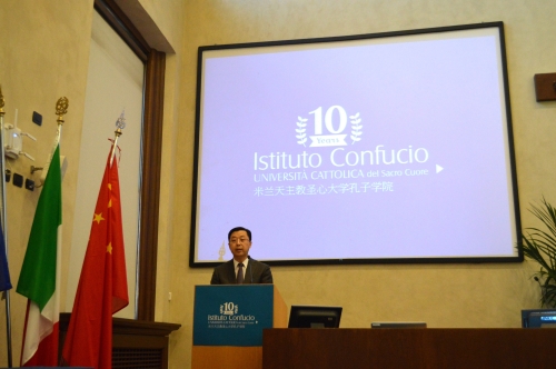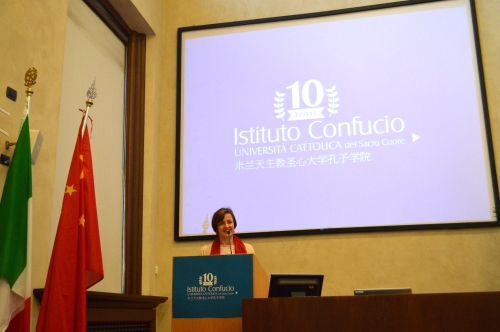 随后米兰天主教圣心大学孔子学院意方院长竺易安教授就孔院十年来的发展发表了讲话。