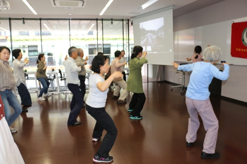“春养肝,夏养心,秋养肺,冬养肾。”讲座上,主讲老师首先介绍了中医养生“顺应四时”的理念,强调夏日养生,重在养心;并从饮食、穿衣、起居、运动、穴位按摩等方面展示了生活中方方面面都隐藏着的养生之道。在老师的带领下,大家一起做了穴位保健操,通过按揉合谷穴、曲池穴、足三里穴和天枢穴四个穴位,一扫夏日午后的慵懒。而后大家一起学习了著名的健身气功——八段锦,一个个招式看似轻柔,实则调动了全身的气力。学员们还体验了“地书”和“柔力球”,书法与健身巧妙结合,球与拍相去相随,笔画铿锵有力,运球柔中带刚。简单运动过后,大家立刻精神倍增。