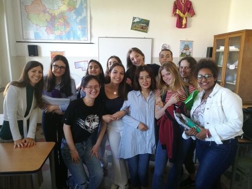 藉由这份热爱,我来到了意大利。现在我在米兰圣心孔院教汉语,又遇到了一群努力、对中国感兴趣的学生。他们有刚上一年级的高中生,有在读大学生,也有已经工作的社会人士。每次站上讲台,看到他们期待与渴望知识的眼神,就让我更觉自己责任重大。因此每次上课前我都会积极备课,从教学环节到具体的教学设计,我都精心准备,并在课下及时进行反思,改进教学方法。“教学相长”,从第一次站上讲台的忐忑不安,到后来的游刃有余,是他们让我不断成长与进步、不断向上攀登。在这里我也遇到了教学经验丰富的赵老师和李老师,她们对教学、对学生的态度也深深感染了我。三十年的青春与汗水挥洒在这三尺讲台上,这其中饱含着多少热爱与坚守啊?因为热爱,所以未曾离开。我也想这样,我也会这样!