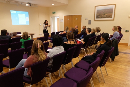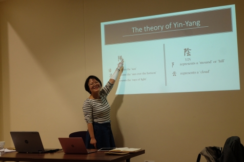 在《中英医疗体系之我见》讲座上,程黎娇子老师首先结合自身在英求学看病时的亲身经历,展示了中国留学生在当地医院遇到的文化冲突与沟通障碍。结合孔院调查数据分析了留学生在英求医困难的类型及原因,提出了建设性意见,并以此入手向在场英国医师们详细解释了“气”、“阴阳”、“五行”等一系列中医健康与医疗理念。讲座现场气氛活跃,医师们不时就中医文化和中英就医环境的差异等问题积极发问,热烈讨论。
