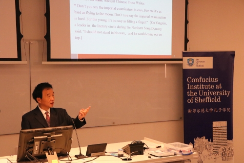 当地时间7月12日,由谢菲尔德大学孔子学院主办的“中外名人传”系列讲座在谢菲尔德大学图书馆(the Diamond)拉开序幕。首场讲座以“心安随处是故乡的文人苏东坡”为主题,由海南师范大学阮忠教授担任主讲。