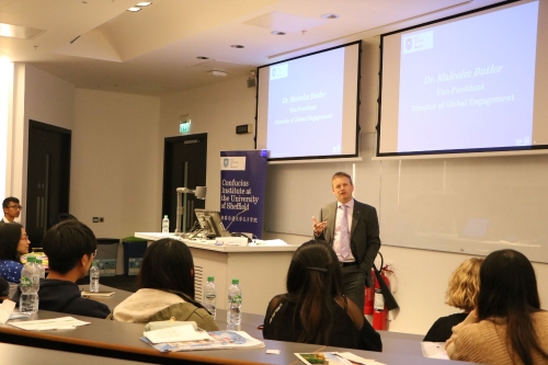 谢菲尔德大学国际合作副校长马尔科姆·白特勒(Malcolm Butler)为学员颁发了结业证书并讲话。他表示非常高兴可以为来自香港的学生提供一个语言与文化交流的平台,以此开拓眼界、提高国际视野,并期望他们能学以致用,将这些经历和体验变成自己宝贵的人生财富。
