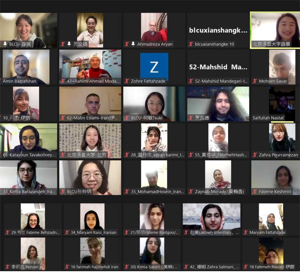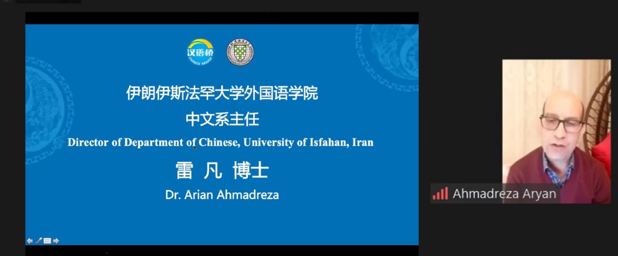 北京时间12月11日,由教育部中外语言交流合作中心主办、北京语言大学承办的2022年汉语桥“中国速度,物流生活”主题学习营顺利开营,北京语言大学孔子学院工作处副处长苏文娟、伊朗伊斯法罕大学中文系主任雷凡(Arian Ahmadreza)、伊朗德黑兰大学助理教授巴阿明(Amin Bazrafshan)与来自伊朗德黑兰大学、伊斯法罕大学、阿拉梅·塔巴塔巴伊大学的140多名营员参加仪式。