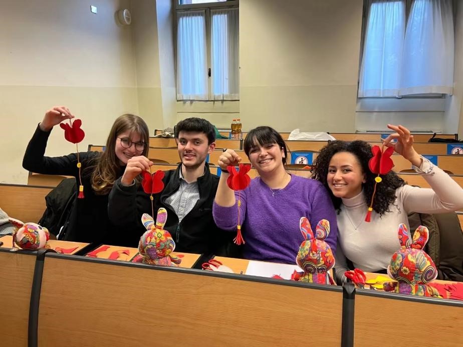 活动尾声,代欣悦同学向孔院老师们表达了自己对此次活动的感谢,她也提到自己很快将赴台湾留学,她希望自己的汉语水平能更上一层楼,然后通过汉语,连接中意,传递友谊。安德烈同学则表示自己是第一次参加中国文化活动,他很开心也很满意,从来没有学过汉语的他今天学会了“兔子”,“谢谢”和“新年快乐”,简简单单的三句话在他的心里播下了小小的种子,我们期待着它发芽,长大。