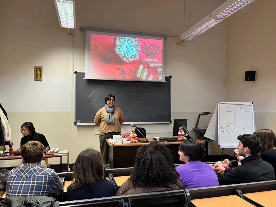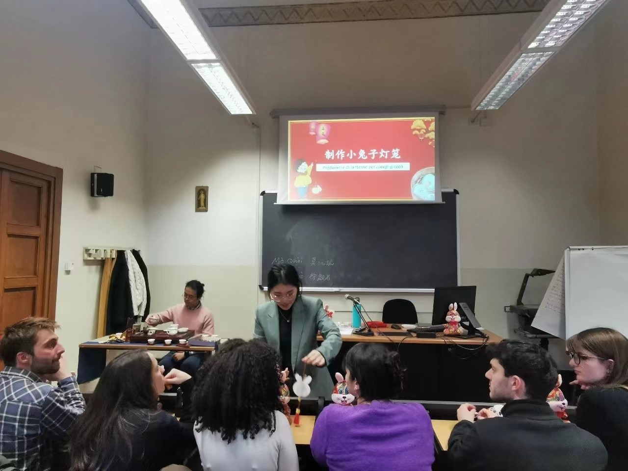 当地时间2月7日下午,米兰天主教圣心大学孔子学院在圣心大学卡尔杜齐校区011教室成功举办元宵节活动。孔院志愿者教师徐啟若,莫沁妮带领圣心大学外语系学生体验中国茶艺,制作兔子灯笼。圣心大学外语系中文项目负责人兼孔院教学顾问夏慕华(Chiara Piccinini)教授,圣心孔院中方院长梁清教授以及孔院部分教师共同参与此次活动。