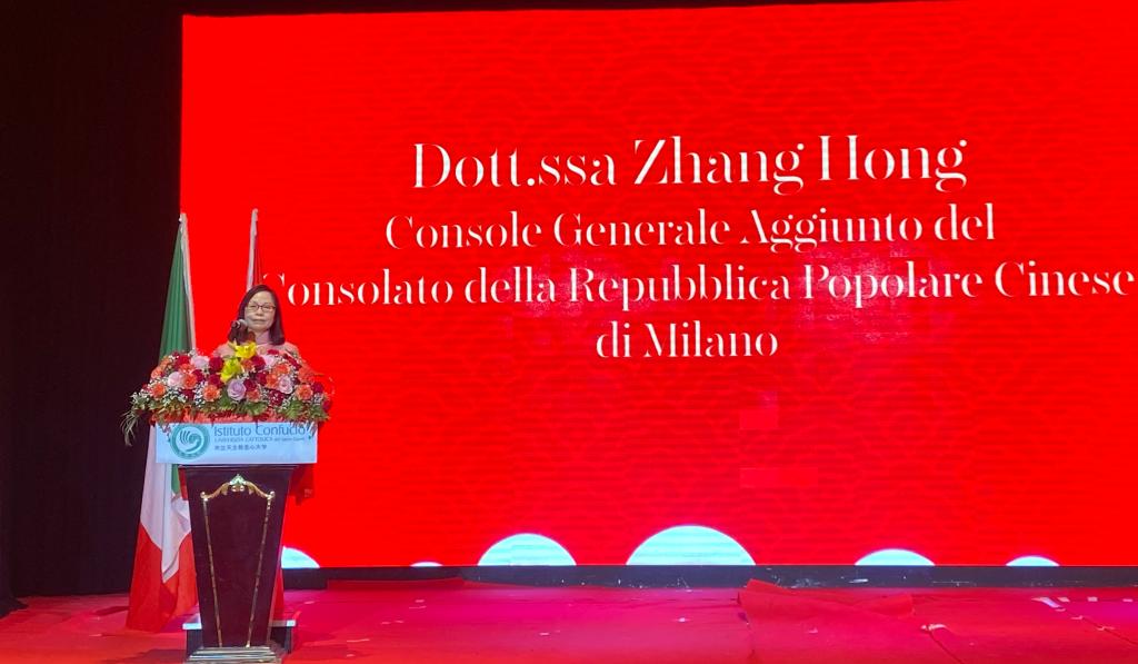 高朋满座,蓬荜生辉。中国驻米兰领事馆副总领事张洪女士发表了热情洋溢的致辞,她向在座的嘉宾致以新春的祝福,强调了孔子学院在中意语言文化交流中重要的作用,肯定了圣心孔院近年来的发展成就,鼓励孔院在难得的历史发展机遇中继续发挥桥梁和窗口的作用,深化中意两国源远流长的传统友谊。同时她也表示米兰总领馆将一如既往地支持孔子学院达成这一愿景,希望在座的各位朋友做新时代的马可波罗,成为中意友好关系的参与者和贡献者。