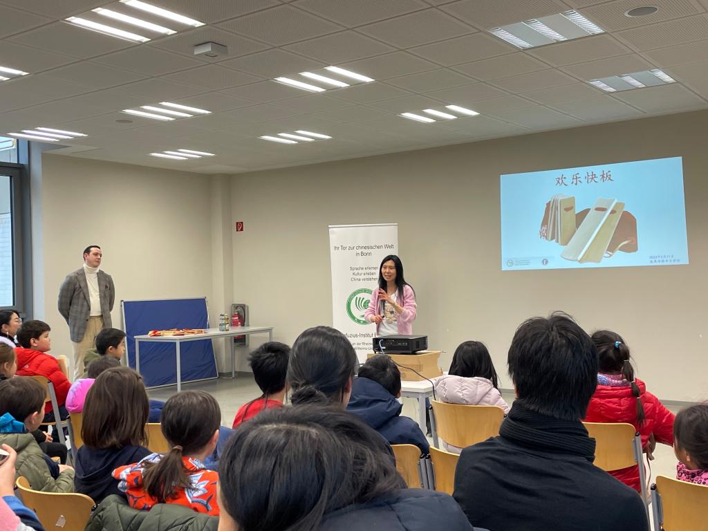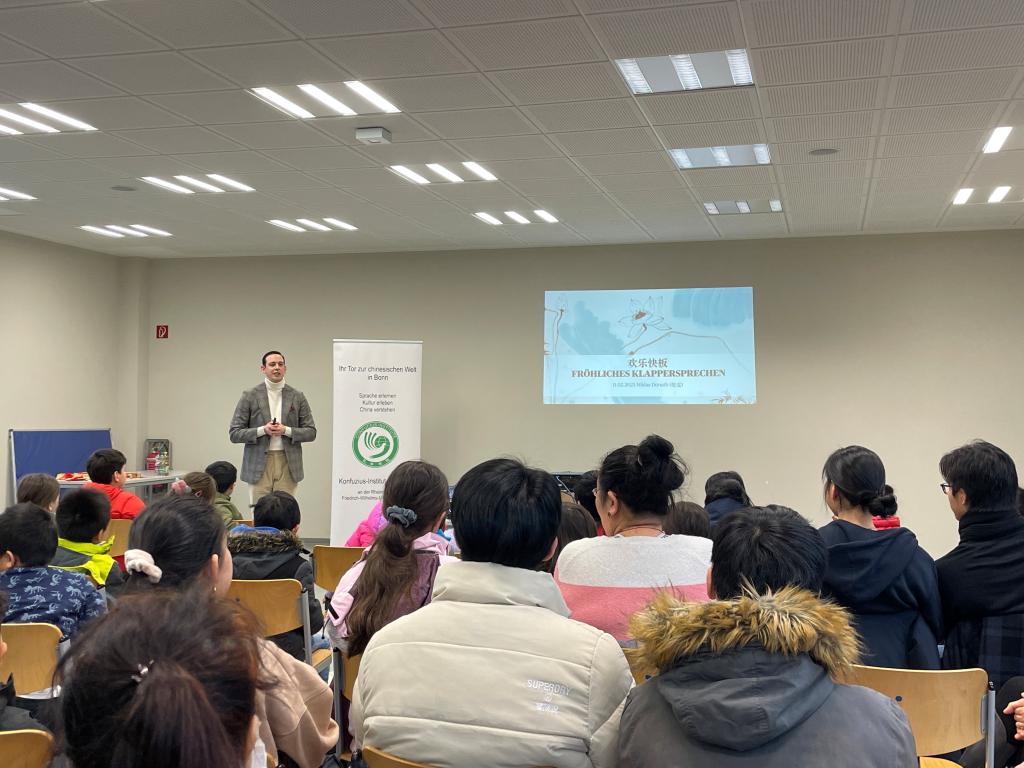 2月11日,由波恩孔子学院主办、国际说唱艺术联盟协办的“快乐快板”课堂活动在波恩华侨中文学校成功举行。本次活动由波恩孔子学院院长助理李玮老师主持并邀请到了国际说唱艺术联盟理事、中国曲艺家协会海外荣誉会员、青年快板演员倪克(Niklas Donath)为现场观众讲解快板的艺术。