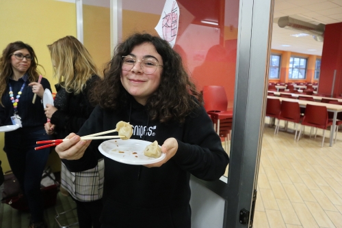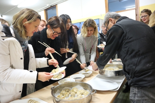 2019年2月1日,布斯托阿里西茨奥(Busto Arsizio)小镇仍飘着雪。临近春节,我们在遥远的意大利通过一系列文化活动让意大利人感受中国的新年。“走进中国”系列文化活动之“巧手中国菜”,在圣心孔院下设孔子课堂托西(TOSI)高中开展,拉开了此次系列活动的序幕。下午三点,100余名学生及家长陆续来到食堂。有的想来品尝饺子,有的想学习菜谱,还有的想了解饺子背后的中国文化。