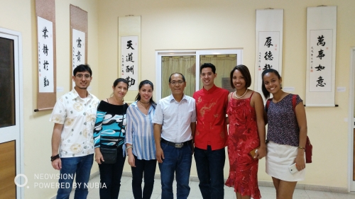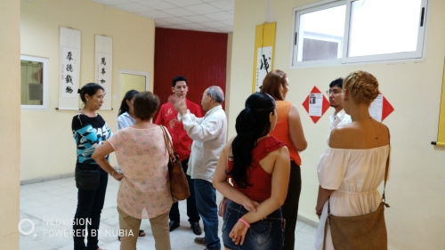 为了配合书展,孔院作为第二场地,2月7号当天还举办了中文书法展和《舞狮在古巴》新书发行仪式。书法展出了Fidelito Alay(邓小龙)的个人习作共8幅,作者原是孔院学生,后来成为孔院志愿者教师,自幼酷爱书法、篆刻、雕刻等中国传统艺术,并在2016年获得大学生汉语桥古巴赛区冠军。《舞狮在古巴》的作者邓颖旭是古巴第二代华侨,在父亲的影响下,一家人都致力于传承中国文化。他本人酷爱武术和舞龙舞狮。书中记述的是自上世纪50年代起,武术和舞龙舞狮文化在古巴的逐渐发展。该书也是研究古巴华侨历史的第一手资料。