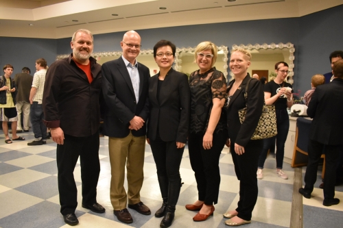音乐会结束后,奚望教授还与孔子学院美方院长沃夫冈•施勒尔博士及执行院长金伯利女士进行了交谈,也与观众进行了更进一步的交流。奚望教授表示非常高兴能够受邀在中国春节之际来到佐治亚州立大学与大家分享自己的作品,也希望借此机会使更多的人了解中国音乐和文化的魅力。
