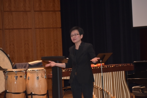 音乐会开始之前,佐治亚州立大学孔院执行院长金伯利女士对奚望教授的到来表示了感谢和热烈欢迎,也向到场观众送上了新年祝福。奚望教授幽默风趣地与观众分享了自己幼时学习音乐的故事,阐释了本场音乐会作品的创作意图和内涵,并向观众介绍了中国传统戏曲和音乐对自己作曲的影响。观众也向奚望教授提出了许多音乐方面的问题,她一一作答,现场气氛欢快而热烈。