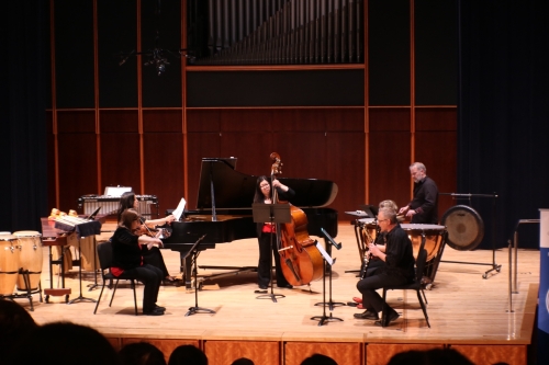 本次音乐会由《河神祭祀》(The Rites of River Gods)、《二前奏》(Two Preludes)、《汉代雕塑》(The Han Figurines)以及《回声•诗•画面》(Echo. Poem. Image)四个篇章组成;每个篇章都融合了中国传统文化元素,给现场观众带来了流淌着中国韵律的听觉享受。奚望教授所作的《回声•诗•画面》(Echo. Poem. Image)创作灵感源于中国元代著名的小令《天净沙·秋思》,运用钢琴、小提琴、大提琴、长笛、单簧管以及多种打击乐器合奏,营造了强烈的画面感,意境悠远,令观众陶醉其中。结束时,音乐厅里响起了阵阵掌声与喝彩。