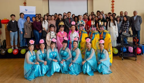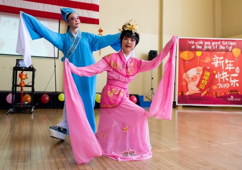 当地时间2月5号,佐治亚州立大学孔子学院联合世界语言文化系中文项目组共同举办的2019校园新春联欢会,在亚特兰大校区Veteran's Memorial Hall拉开帷幕。出席本次活动的嘉宾有佐治亚州立大学教务长沃夫冈•施勒尔博士(Dr. Wolfgang schloer)、佐治亚州立大学孔子学院中方院长朱姝博士、外方执行院长金伯利•亨肖(Kimberly Henshaw)女士、世界语言文化系中文项目负责人郦帅教授。