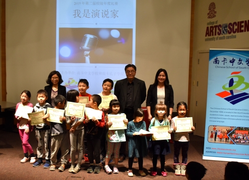 全部比赛结束后,南卡大学孔子学院外方院长叶坦教授和中方院长李越教授为获奖选手颁奖。李越院长还代表南卡大学孔子学院讲话。李院长首先向各位获奖选手表示祝贺,然后高度评价了南卡中文学校在南卡州的华裔学生中间推动中文和中华文化教育方面所取得的成绩,同时邀请南卡中文学校学生参加南卡大学孔院主办的“南卡中文之星大赛”。相信明年的“南卡中文之星大赛”因为华裔学生的参加,水平一定会更高,也更加精彩!