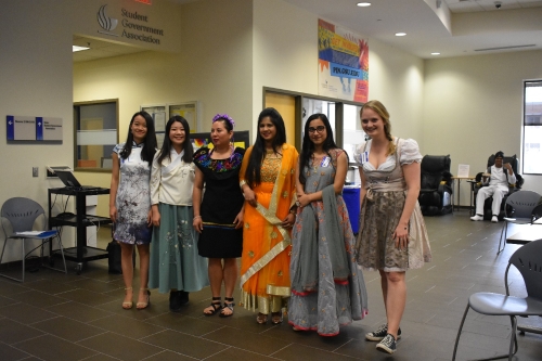 本次文化节还穿插了各国服装展示环节,来自佐治亚州立大学孔院的志愿者们也参加了服装展示活动。她们身着汉服和旗袍,展示了中国传统服饰之美,也让不同国家的人了解中国服饰。