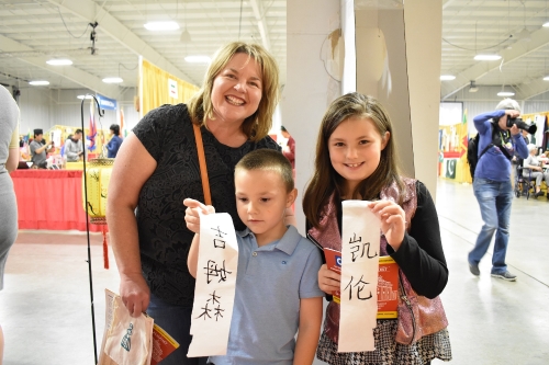 活动中,孔院设置的书法、动手实践、民族服装、十二生肖四个主题活动区前人头攒动,参观的学生和民众络绎不绝。许多人都是第一次接触中国书法,他们对汉字饶有兴致,纷纷请孔院教师为自己写中文名字,尽管需长时间排队等候。不少人拿到自己的中文名字兴奋离开后,又匆匆返回,只为让自己的家人也有一个酷酷的中文名。在动手实践区,用筷子夹玻璃球的游戏受到了各年龄段游客的欢迎,可谓老少咸宜、不分国界。