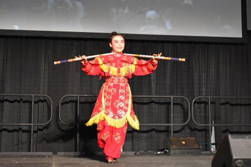 孔院今年特邀纽约州立宾汉顿大学戏曲孔子学院张琦、何子琛两位京剧演员,为观众献上了《扈三娘》和《摇钱树》两部经典武戏。舞台上,两位演员把糅合了武术与舞蹈动作的京剧武戏演绎得淋漓尽致。精彩的演出赢得了在场观众的阵阵惊叹和掌声。