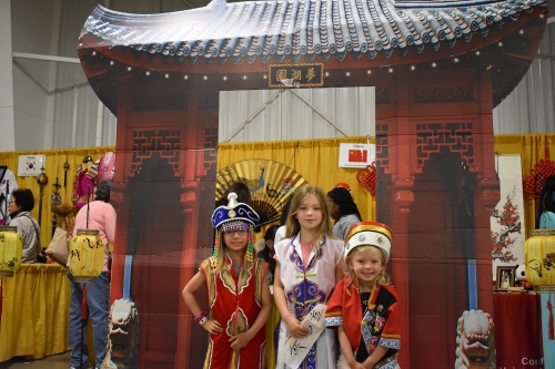 南卡罗来纳大学孔子学院展位饰以传统的中国四合院大门,吸引了众多观众走进古色古香的孔子学院。人偶大熊猫备受小朋友的宠爱,他们纷纷跑过来跟大熊猫拥抱拍照。
