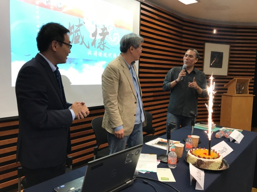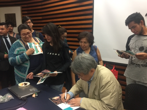 与观众交流的过程中,墨国大的学生踊跃向臧棣发问:“为什么选择写诗?”“在社交媒体主宰的时代,诗歌如何吸引年轻人?”“不同语言文化的诗歌是否能汇聚成共同的价值”等等,诗人逐一诚恳地予以答复。活动接近尾声时,墨国大孔院还准备了意外的惊喜:当天适逢臧棣生日,现场观众用中文和西语齐唱生日快乐歌,祝福美好之声荡漾在讲座礼堂中。讲座结束后,观众们热情地与诗人臧棣签名合影,中国环球电视网(CGTN)西班牙语频道记者也对诗人进行了现场采访。