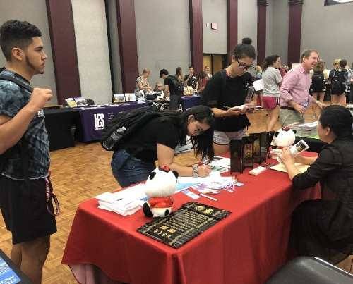 “海外游学项目推介会”是南卡大学在全校范围内宣传各院系海外留学项目的重要活动,每年分别在春季和秋季学期各举办一次。为了能够在推介会上全面介绍孔子学院的留学项目和其他文化活动,吸引更多美国学生走进孔院、了解孔院,进而走进中国、了解中国,南卡大学孔院对此次推介活动进行了精心准备。他们一方面准备了详尽的项目介绍,如冬令营项目和奖学金项目的相关资料,并精心制作成精美的宣传页进行现场发放,同时充分利用各种有中国特色的饰品和礼物,如熊猫玩偶、书签、竹简等,在吸引学生的同时有效地宣传中国文化。前期的精心准备使得活动在当天获得了巨大成功。孔子学院的展台前咨询的学生络绎不绝,很多学生对冬令营项目和奖学金项目都有浓厚的兴趣,一些学生当场就留下联系方式表示要报名参加冬令营活动。还有一些学生在活动之后与孔院联系,表示非常希望能够到中国学习汉语、了解中国文化,希望获得关于2018年孔子学院奖学金的更多信息。目前,南卡大学孔子学院的冬令营招生活动已经圆满结束,报名的学生人数大大超出了预定人数,南卡大学孔子学院正在进行资格的审查和录取工作。