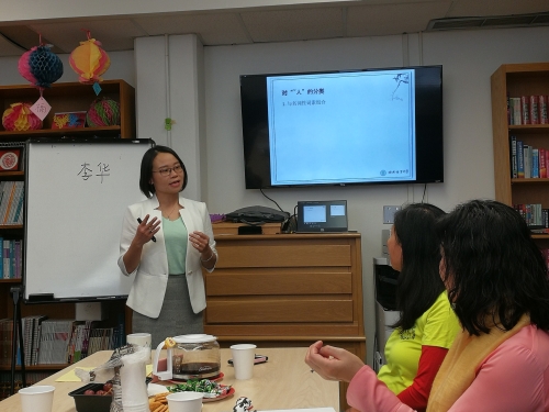 当地时间11月10日,乔治梅森大学孔子学院2018秋季本土中小学汉语教师工作坊(Workshop)系列活动成功举办第三期。本次工作坊的主题为“初级汉语词汇教学”,由北京语言大学李华老师主讲,张晓明、于天昱等老师也参加了本次活动。来参加培训的有费尔法克斯郡(Fairfax County)和周边其他郡的大中小学汉语教师。