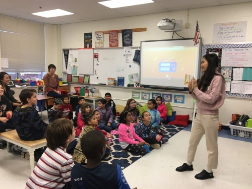 艾比的同班同学秦川刚从中国来到美国几个月的时间,看到我们的到来,感到非常亲切,不但认真地参加活动,还跟老师们一起教同学们说中文。