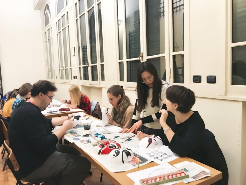 11月24日,星期六上午十点到十二点,圣心孔院汉语角活动之脸谱在圣心大学卡尔杜齐校区一楼长廊举办,本次活动由王思思老师负责。