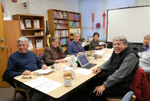 每周五是乔治梅森孔院的中国文化沉浸日,太极、手工和棋牌课都集中在这一天。太极课不但吸引了大学的学生和附近居民的参与,本地残疾人服务中心(ServiceSource, Inc.)的工作人员也会组织一些残疾人士来进行体验锻炼。孔院的谷岱和董鲁霞老师耐心地将24式太极拳的每一个动作和口令进行演示和解释,一遍遍地带学员们进行练习,同时还会介绍一些相关的中国功夫和哲学的知识。学员爱梅(Carl Ek)每次上课都会穿着在中国买的印有“少林”字样的T恤衫,热情且认真的跟老师一起练习。本学期课程结束后,她用中文向孔院和老师们表达了感谢,并表示下学期还来参加。手工课是另一门生动有趣的文化课,学员们可以亲自动手制作中国竹简、绣球,体验篆刻、剪纸、中国结,画油纸伞、葫芦绘画等多种多样的传统手工项目,深受当地居民的喜爱。格鲁利亚(Gloria Nalls)是孔院的常客, 每次下课老师都能收到她真诚的感谢。她经常说自己在这里学到很多东西,充实了自己的生活,很感谢孔院用心准备的这些项目。棋牌课上,一张张西方面孔围坐四周,热火朝天地打着麻将,相关中文词语早已烂熟于心。或者两人对弈,交流着下棋心得,让人不禁莞尔而感动。