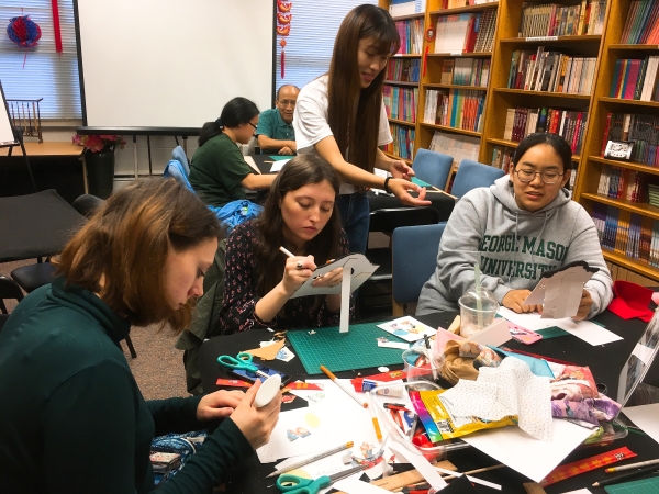 每个星期五的中午十二点,梅森孔院的活动室中都高朋满座,大家在孔子学院学习制作中国手工作品。前来参加的人中,有梅森大学的学生,也有对手工活动和中国文化感兴趣的周边社区居民。