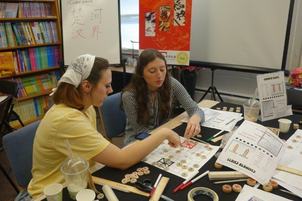 第三,气氛轻松愉快。每一次手工活动都是一次放松身心的体验,让参与者在制作过程中心情愉快。有的中文学生在制作手工的过程中,学会了许多不同的汉语表达;有的学会了一首中文歌;有的则在刻印章和制作中国象棋等活动中学会了汉字的书写;更有一些参与的学生,学会了中国游戏的规则,如安德鲁(Andrew)活动时学会了象棋的规则。