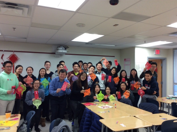 当地时间3月5日,乔治梅森孔子学院的老师来到托马斯杰斐逊克科技高中(Thomas Jefferson High School for Science and Technology),和该校两个中文班的三十多名学生一起,在书法体验和手工活动中共同度过了一个中国文化气息浓厚的元宵佳节。